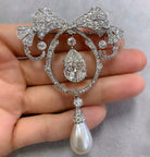 Fabulous Pear Cut Pearl & White Sapphire Brooch