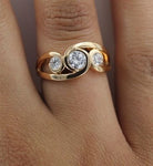 Vintage Inlaid Zirconia Spiral Gold Ring