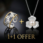 1+1 Offer: Elegant White Pearl Flower Necklace + Irregular Hollow Daisy Ring